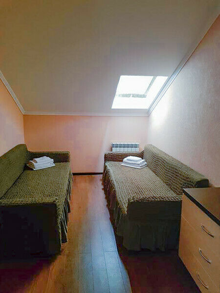 Две односпальные кровати, тумбочки прикроватные, шкаф, рабочий стол, холодильник, кондиционер, телевизор, санузел (душ+туалет)