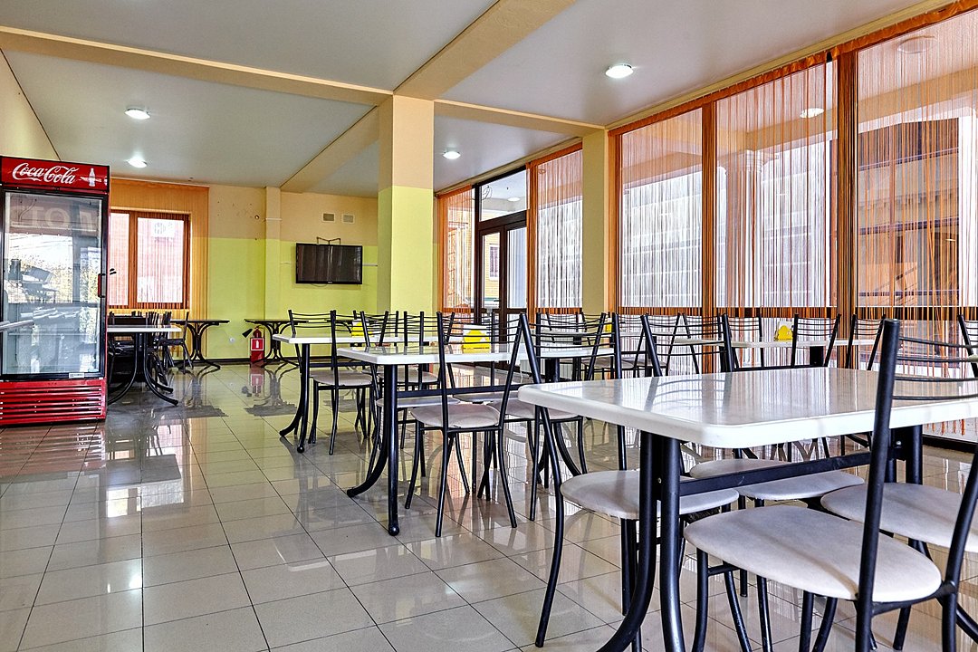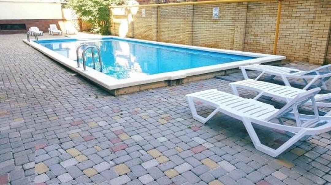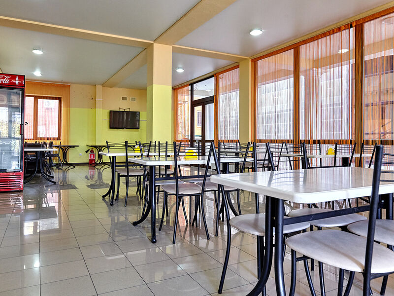 Здание гостиницы состоит из четырех этажей. Стоянка и двор всегда под видеонаблюдением для безопасности постояльцев. На территории есть двор с бассейном открытого типа и площадка для детских игр. В уютной столовой можно отведать отменные блюда.