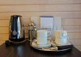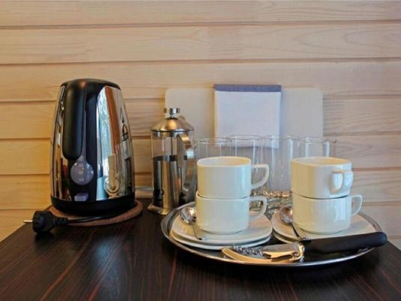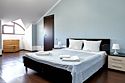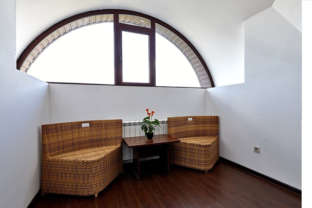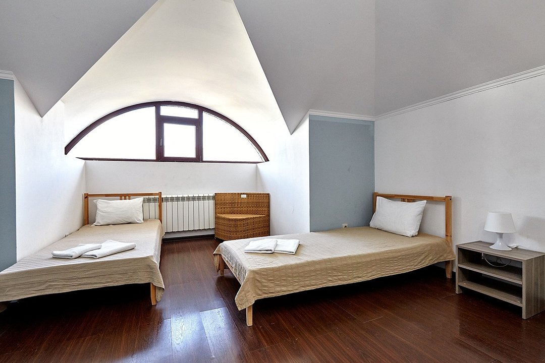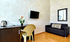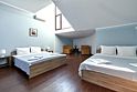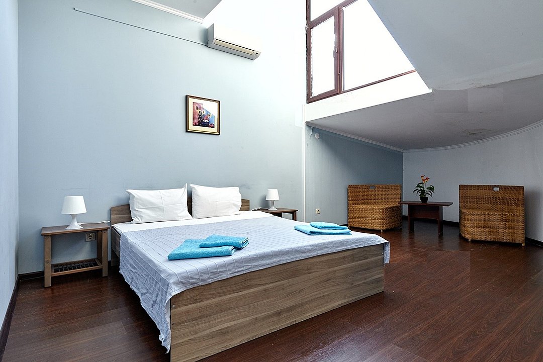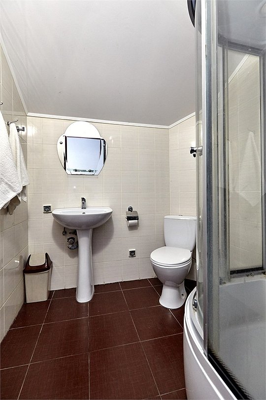 Номера с удобствами оборудованы всем необходимым для комфортного отдыха. Две двухспальные и две односпальные кровати. В каждом номере сплит-система, телевизор с плоским экраном, холодильник, электрочайник, набор посуды, фен, собственная ванная комната с душем, зеркало, стол и стулья, 2 тумбочки, шкаф, набор полотенец. Внимание: мансардный номерУслуги и удобства