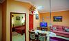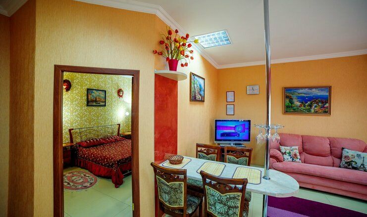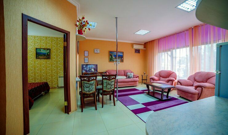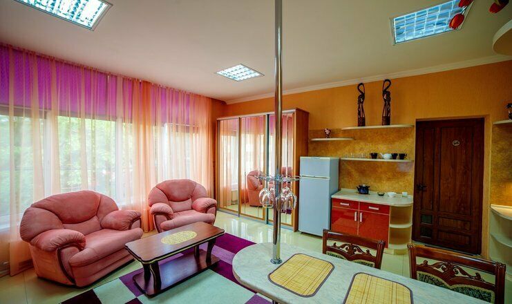Столовые и кафе в шаговой доступности, до центра города пешком 10 минут, да парка аттракционов - 3 минуты, до аквапарка «Дельфин» - 10 минут, гипермаркета Магнит - 10 минут, до остановки транспорта - 3 минуты.