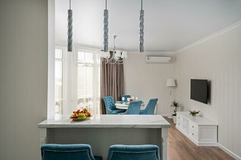 Апартаменты разместились в современном шестиэтажном здании, расположенном на тихой улице в окружении преимущественно малоэтажной застройки. В распоряжении гостей светлые апартаменты со стильными интерьерами, выдержанными в светло-серых и белоснежных оттенках. Каждый номер оснащен индивидуальным санузлом с душем и кухней, оборудованной посудой и техникой, также в Апартаментах имеются стиральная машина, кофемашина, подключен высокоскоростной интернет.