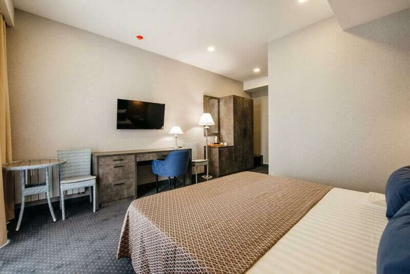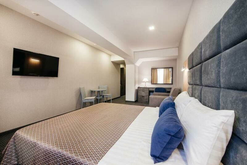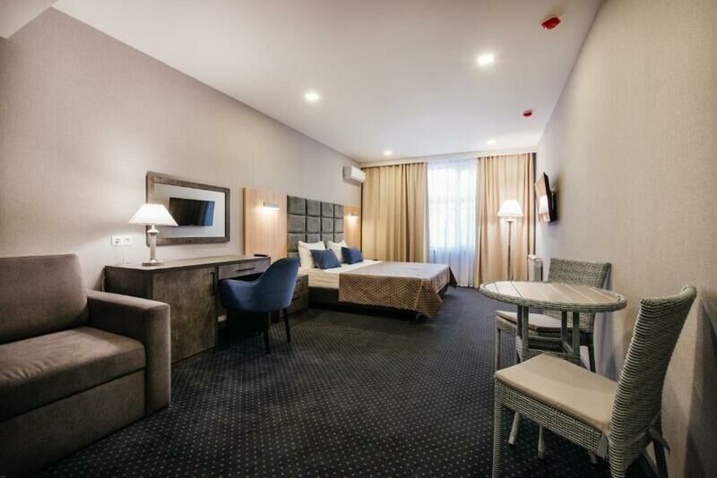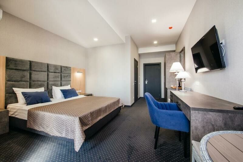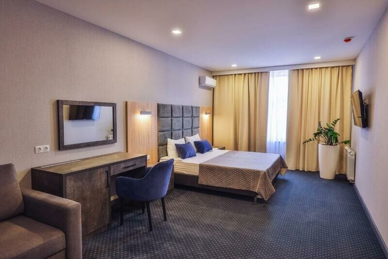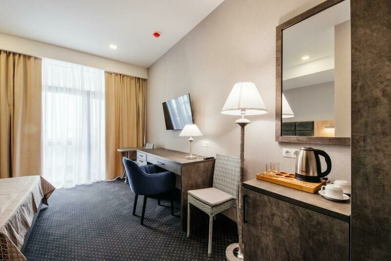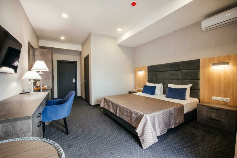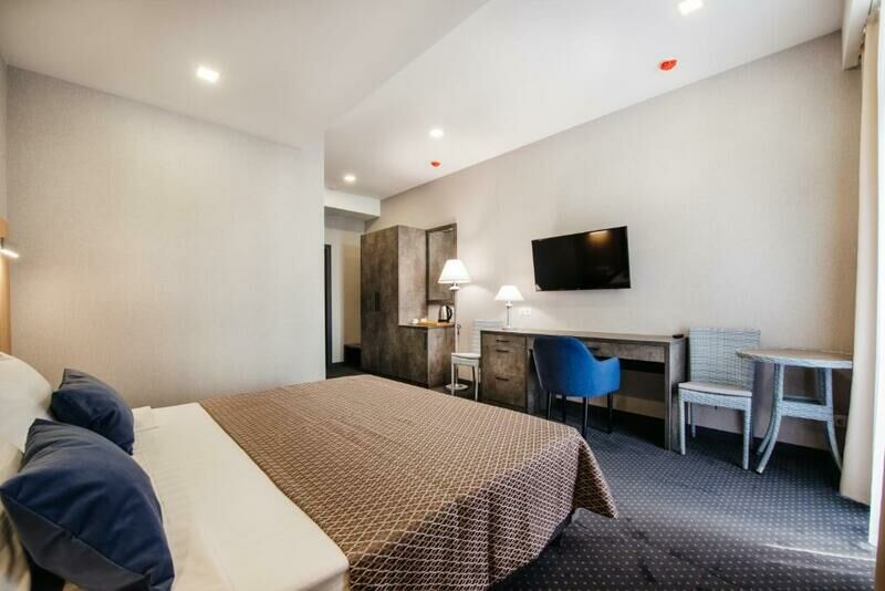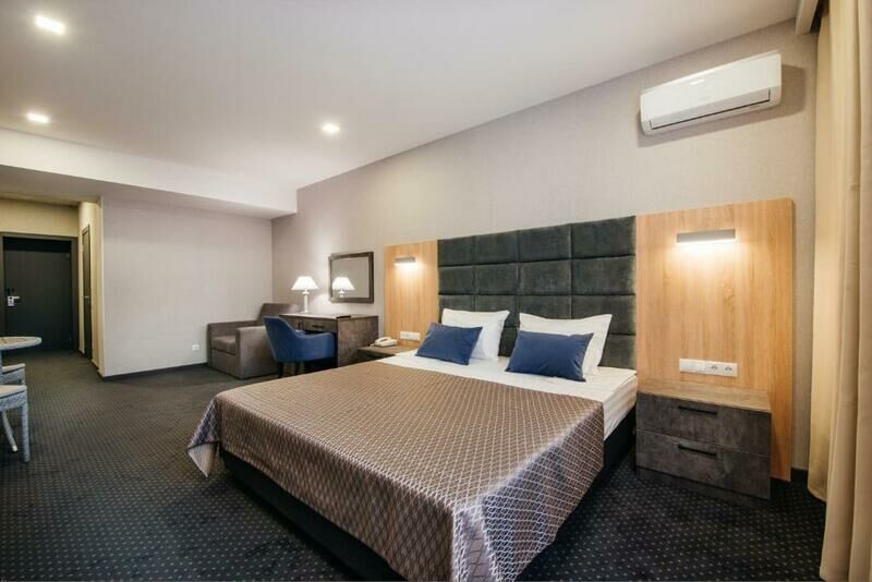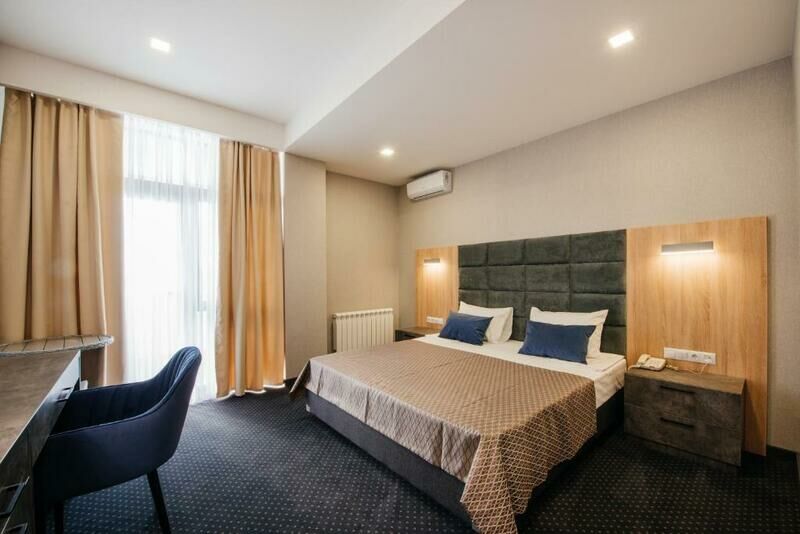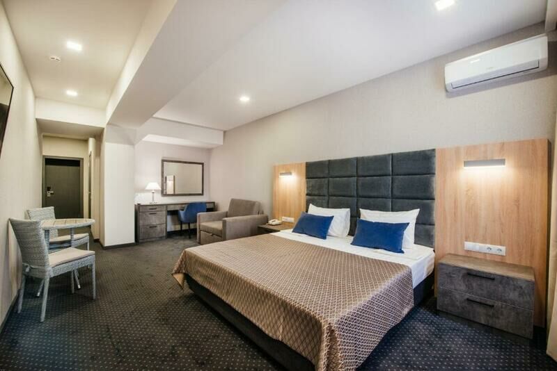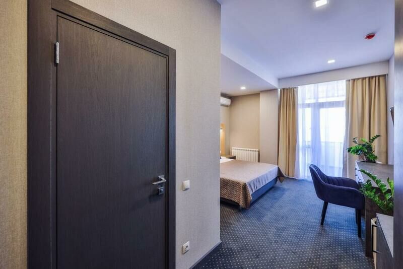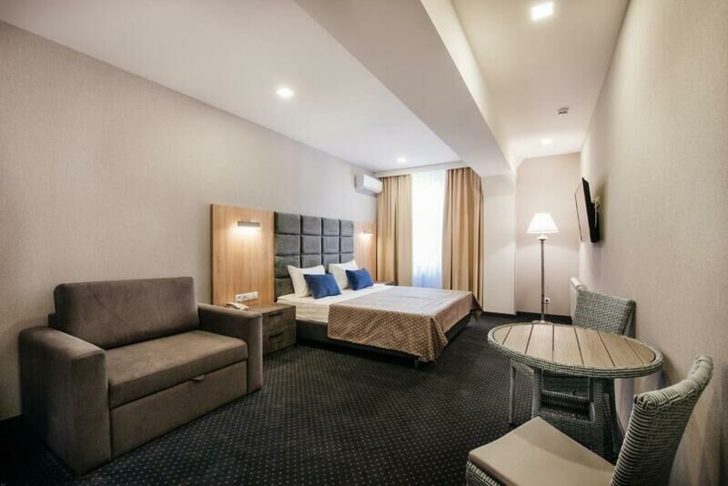 Трехзвездочный отель разместился в памятнике архитектуры, выстроенном по оригинальному проекту советских архитекторов. Гостиница включает 12 современных номеров со стильными и лаконичными интерьерами. Отдыхающим предлагаются номера категории Стандарт. Каждый оснащен сплит-системой, индивидуальным санузлом, плазменным телевизором и другой необходимой техникой. Из некоторых комнат верхних этажей открываются панорамные виды на море.