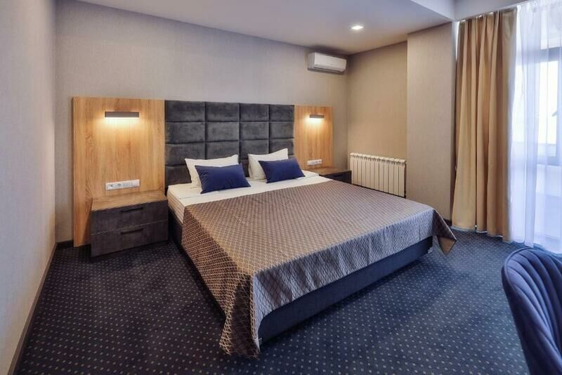 В минуте ходьбы, прямо напротив корпуса отеля — популярный городской пляж. Пляж оборудован: вдоль побережья стоят раздевалки, работает прокат шезлонгов, есть навесы и лежаки, работают бары и кафе.