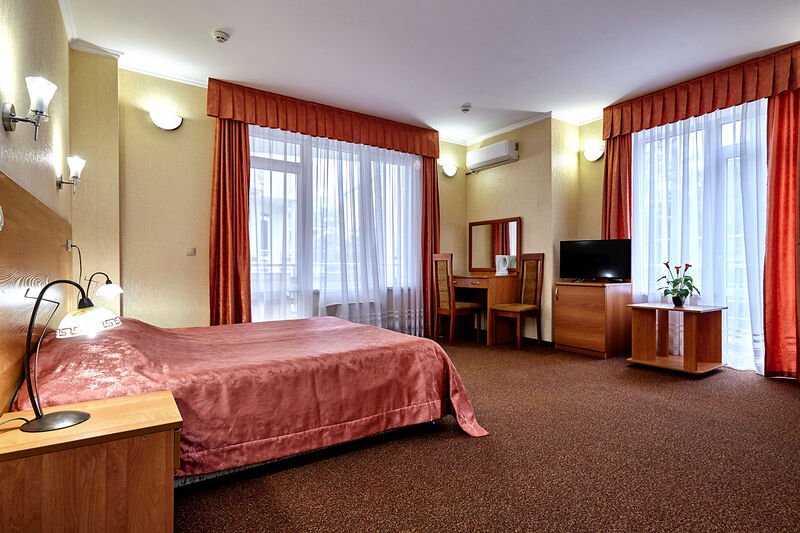 Четырехэтажный корпус отеля расположен на закрытой территории всего в 100 метрах от центральной набережной и моря. Гостей ожидают номера разной категории комфорта, в том числе бюджетные варианты, так и просторные номера, оснащенные мини-кухней. В каждом номере предусмотрен свой санузел с душевой, сплит-система, телевизор, электрочайник.