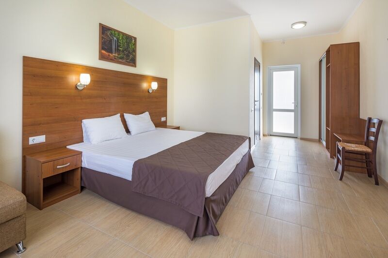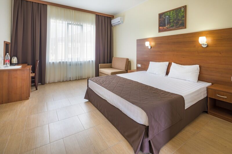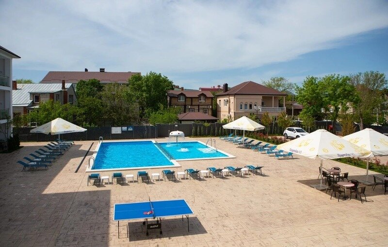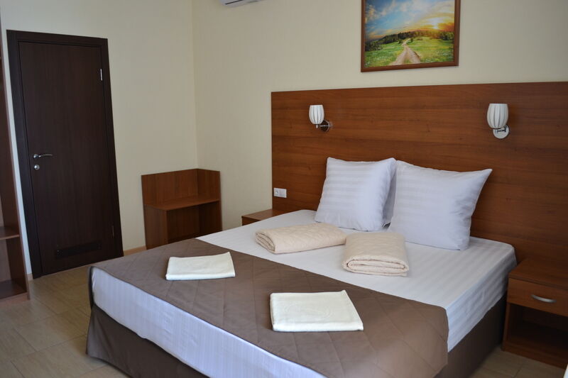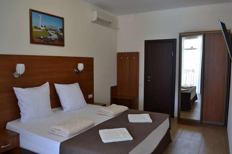 Корпуса гостевого дома расположены на благоустроенной территории с внутренним двориком. Расстояние до моря всего 200 метров. В распоряжении гостей однокомнатные и двухкомнатные номера, оснащенные санузлом с душем и техникой: телевизором, электрочайником, феном. В каждой комнате установлена сплит-система, есть гладильные принадлежности и набор чайной посуды.