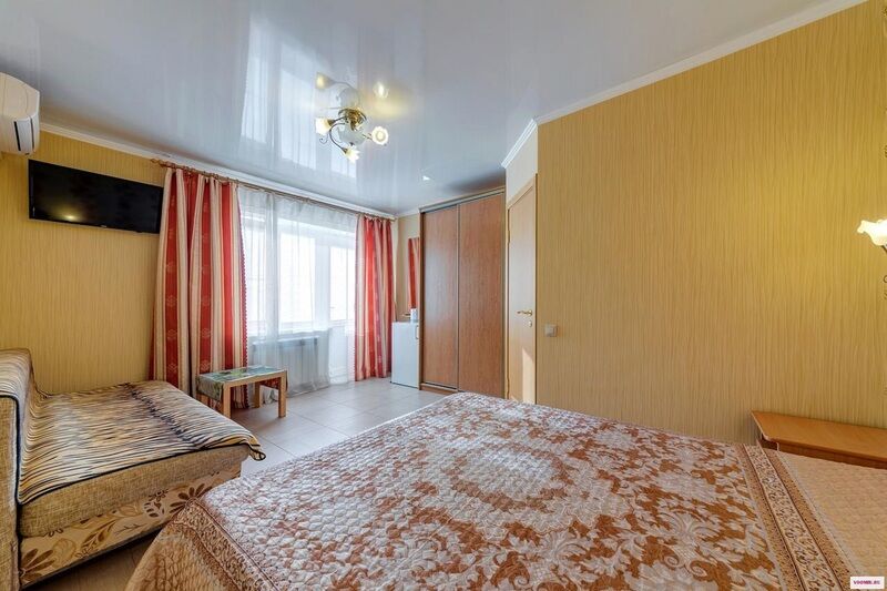 одна двуспальная кровать,диван, с/у с душем, ТВ, мини-холодильник, кондиционер