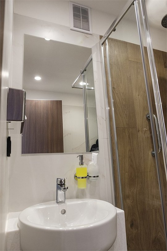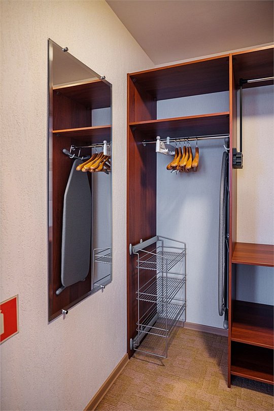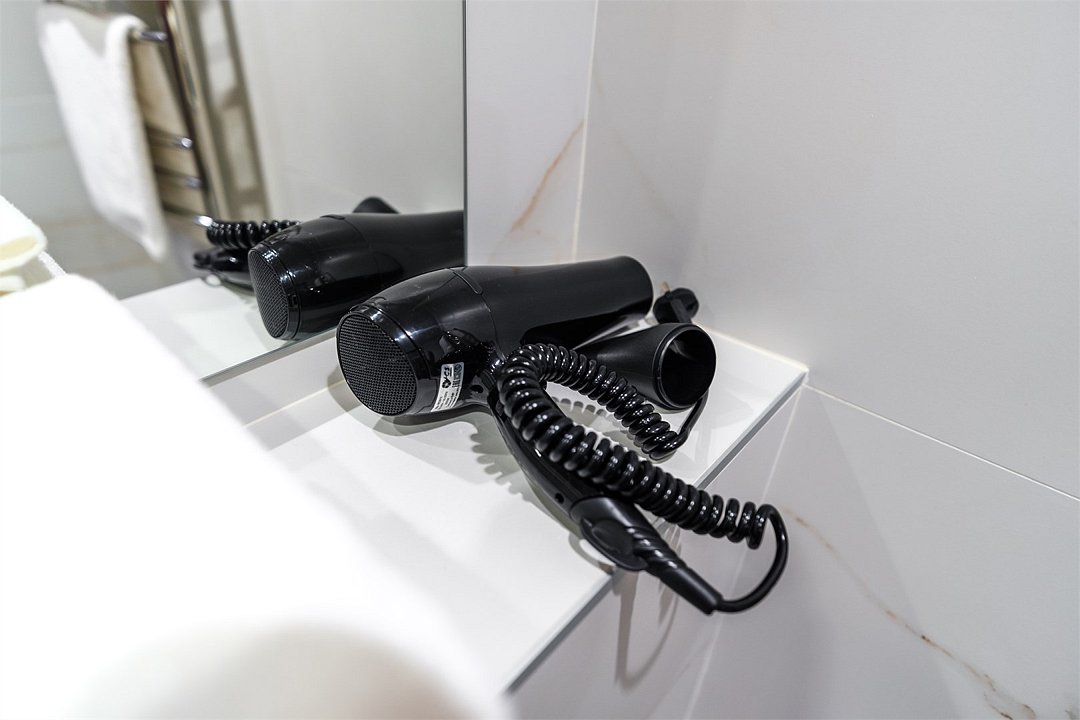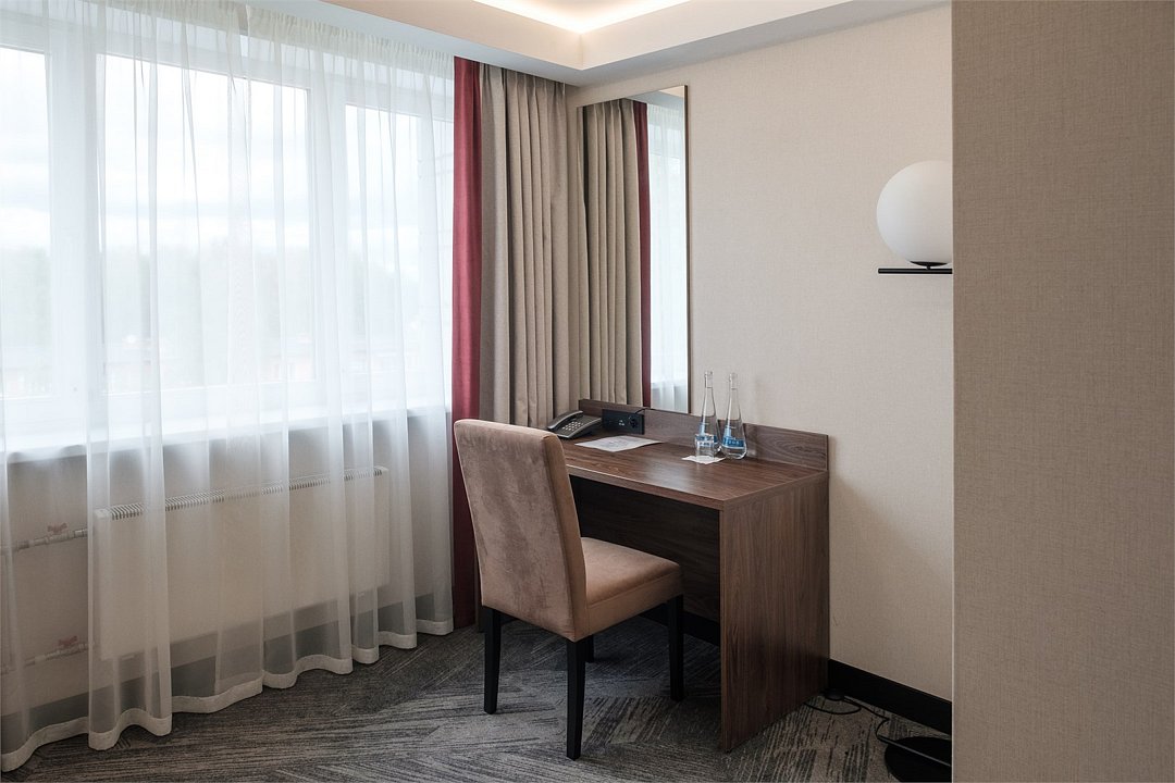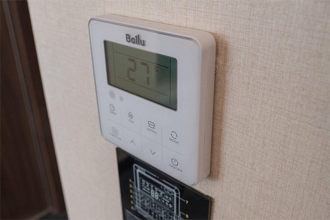 Wi-Fi, интернет, телефон, кондиционер, система климат-контроля, светильник, настольные лампы, фен, электронные замки, обогреватель, душевая кабина, водонагреватель, халаты, банные полотенца, гигиенические средства, кровать «Queen size», стулья, вешалки, письменный стол, зеркало, унитаз, раковина, душ, вид на город, кулер на этаже, вид во двор, туалетные средства, туалет, сплит-система, внутренний телефон, мини-холодильник, телевизор со Smart TV, пуфик, гигиенический душ, затемняющая штора, дождевой и ручной душВ номере
