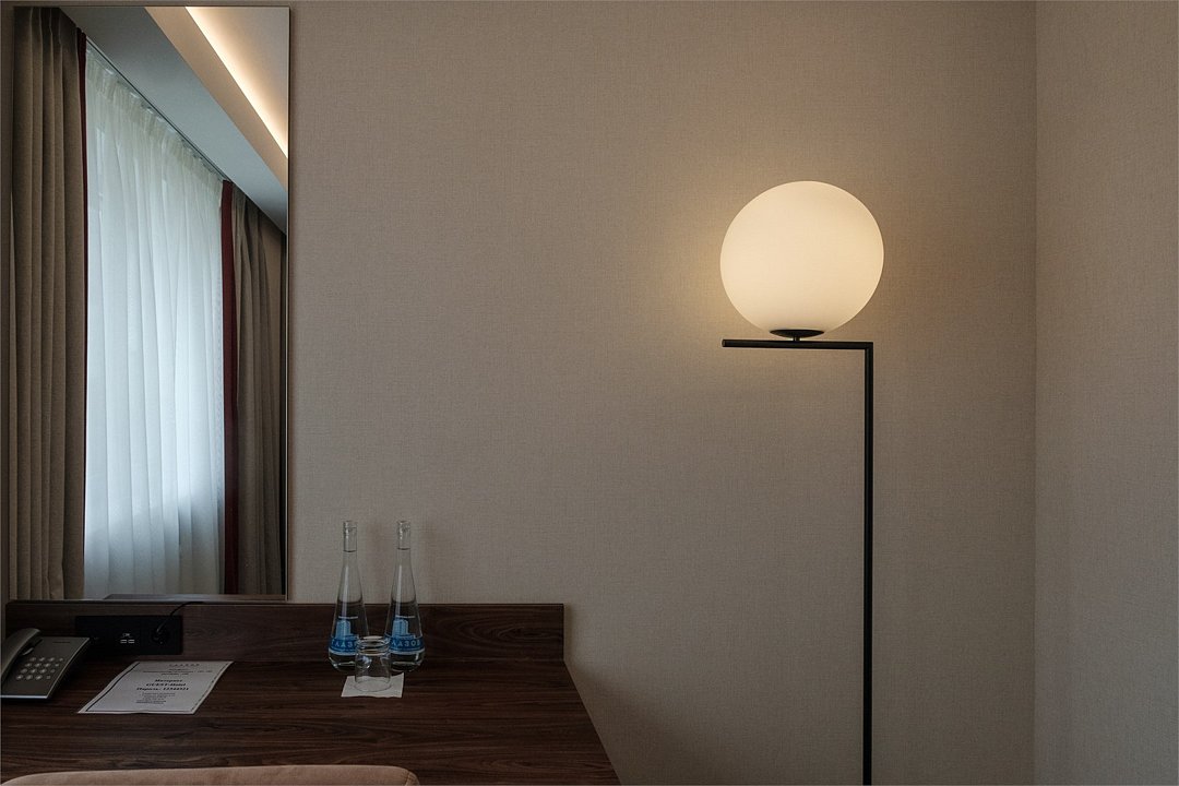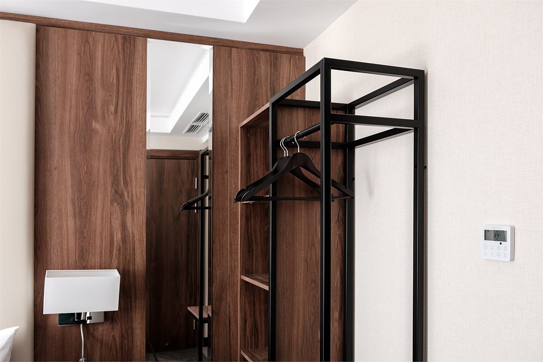 Двухместный номер хранит атмосферу оригинального советского архитектурного модернизма. Гармоничное цветовое и световое решения дарят ощущение камерности, тепла и уюта. Номер консервативный и современный одновременно, сохраняет историю здания и позволяет максимально рационально использовать пространство. Оптимальное решение для тех, кто хочет отдохнуть и поработать с комфортомУслуги и удобства