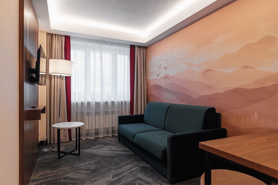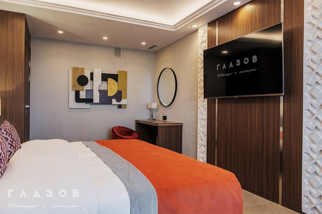 Номер хранит атмосферу оригинального советского архитектурного модернизма. Гармоничное цветовое и световое решения дарят ощущение камерности, тепла и уюта.Номер консервативный и современный одновременно, сохраняет историю здания и позволяет максимально рационально использовать пространство. Оптимальное решение для тех, кто хочет отдохнуть и поработать с комфортом.Услуги и удобства