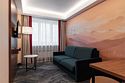Современный взгляд на атмосферу из эпохи строительства гостиницы. Уютный двухкомнатный номер Текстуры темного дерева в отделке мебели и изголовье кровати до потолка придают уют и благородство номеру. В стоимость номера входит завтрак по системе «шведский стол» и доступ в лаунж клубного этажа, зону отдыха, бесед, общения с коллегами, друзьями, семьей.Услуги и удобства