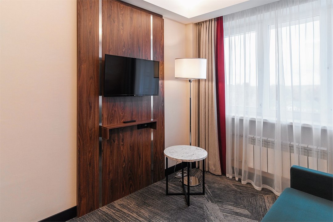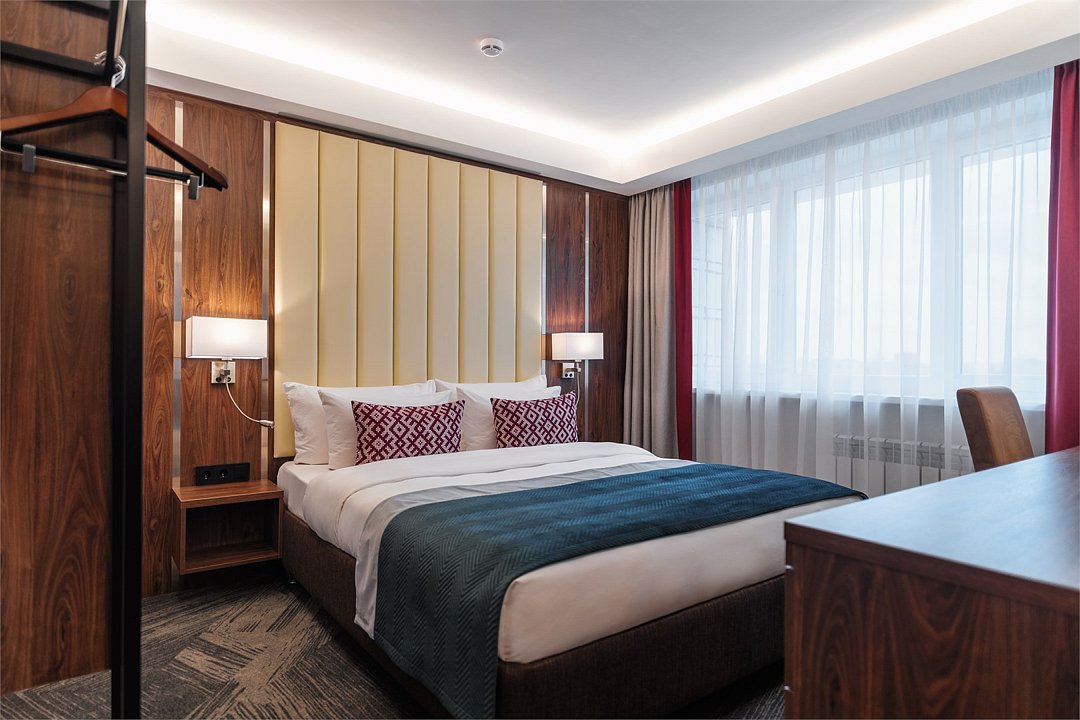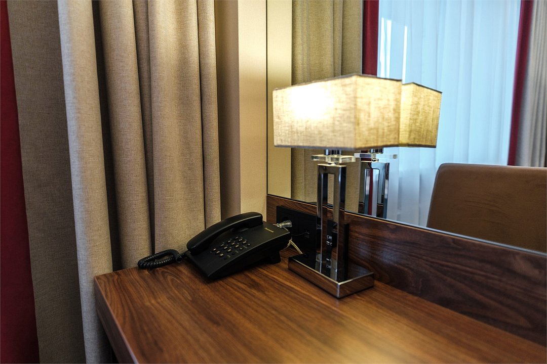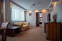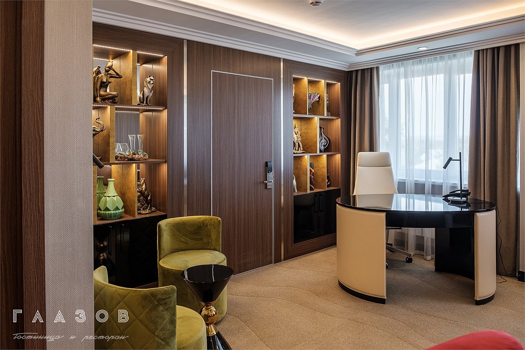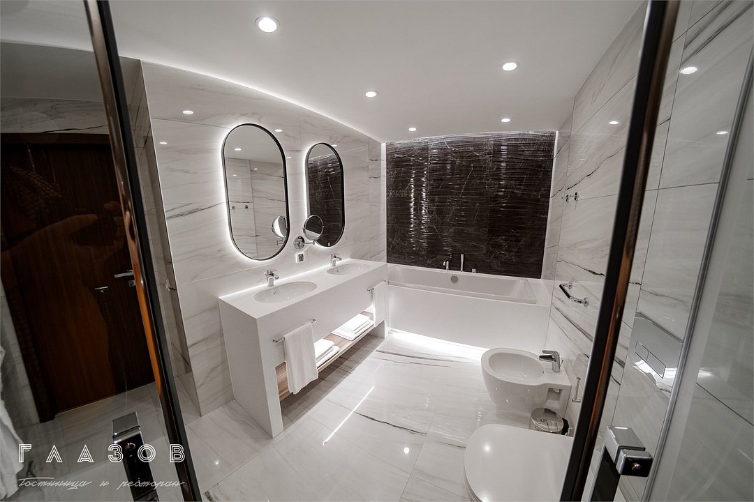 Роскошные апартаменты для проживания в условиях повышенного комфорта. Эксклюзивный дизайн погрузит в неповторимую атмосферу стиля и комфорта. Просторный номер состоит из гостиной, спальни, гардеробной и двух комнат гигиены. Номер отвечает всем современным требованиям и оборудован системой климат контроля, двумя телевизорами, сейфом, Wi-Fi. В номере два санузла: гостевой и основной с ванной и душевой кабиной. VIP – отличный выбор для деловых поездок и комфортного отдыха. В стоимость номера входит завтрак по системе «шведский стол» и доступ в лаунж клубного этажа, зону отдыха, бесед, общения с коллегами, друзьями, семьей.Услуги и удобства