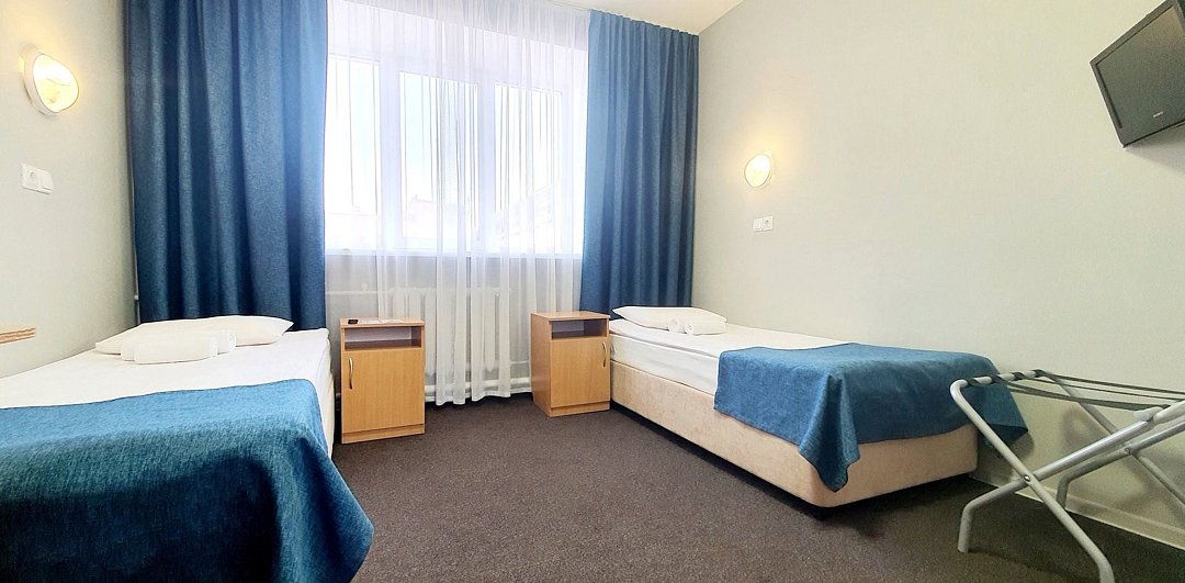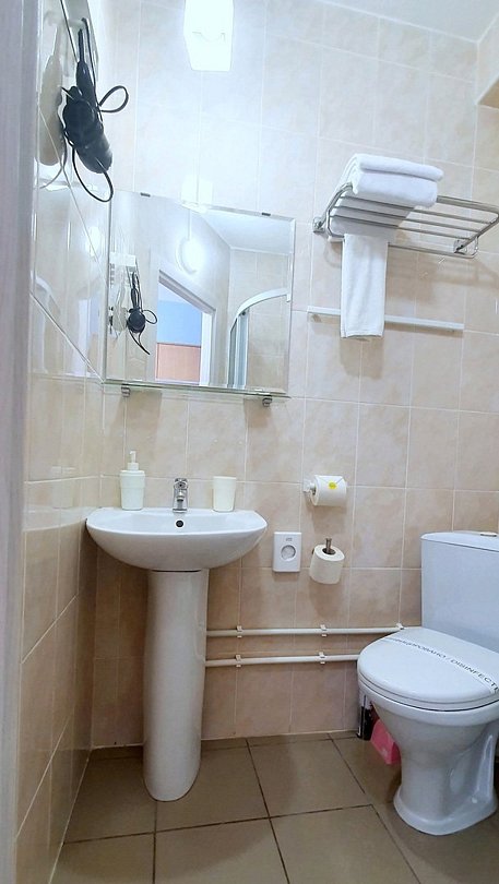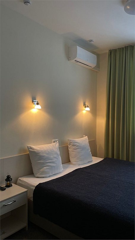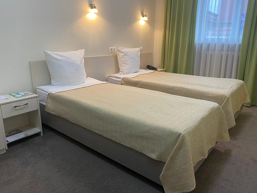 телевизор, Wi-Fi, телефон, кондиционер, настольные лампы, фен, душевая кабина, банные полотенца, тапочки, две односпальные или большая двуспальная кровать, кулер на этаже, вид во двор, туалет, без питомцевВ номере