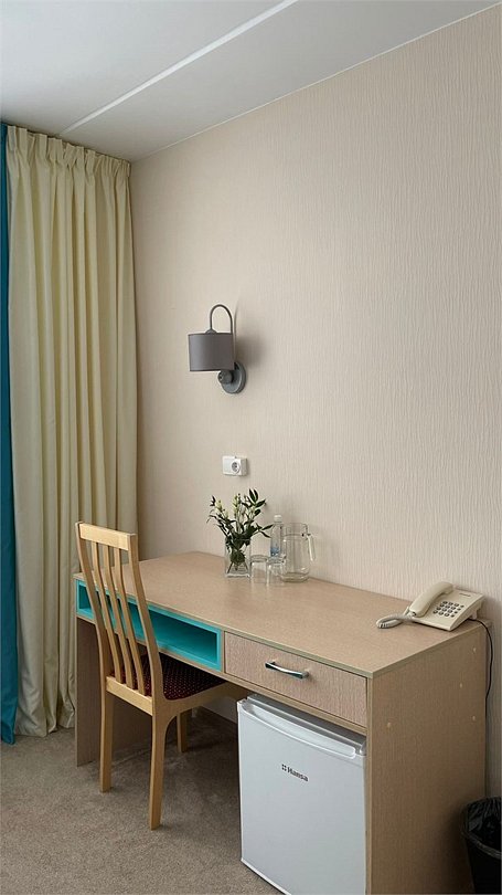 Комфортный однокомнатный номер первой категории, оснащенный кондиционером, рабочей зоной с письменным столом. Номер оформлен в светлых пастельных тонах. Предназначен для одноместного размещения. Имеет ванную комнату с душевой кабиной.Услуги и удобства