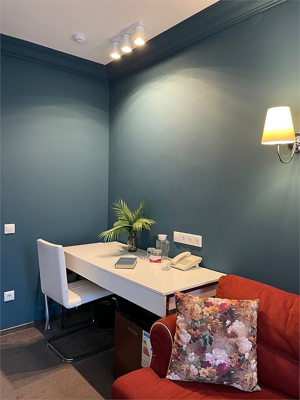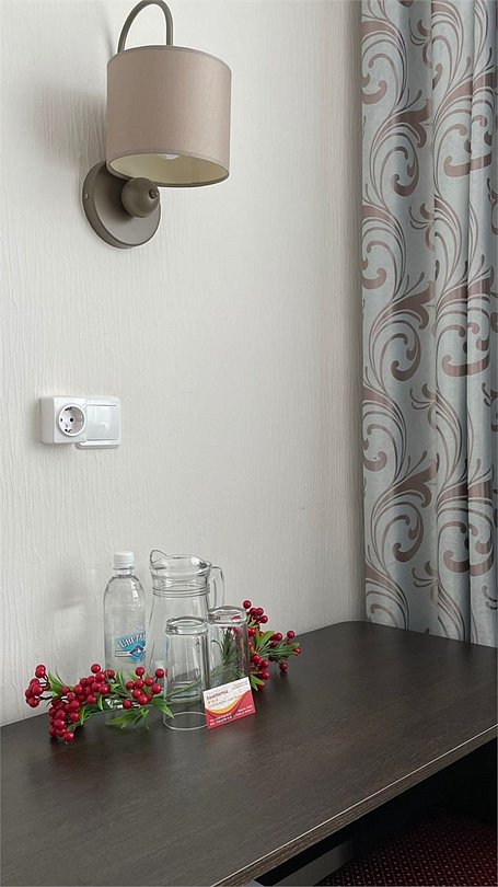Wi-Fi, кондиционер, светильник, фен, душевая кабина, халаты, банные полотенца, тапочки, гигиенические средства, две односпальные или большая двуспальная кровать, диван, тумбы, стулья, шкаф для одежды, вешалки, письменный стол, зеркало, сейф, чайник, унитаз, раковина, питьевая вода, ковровое покрытие, отопление, кулер на этаже, кресло, вид во двор, стаканы, стол, туалетные средства, внутренний телефон, телевизор с плоским экраном, номер для некурящих, без питомцевВ номере