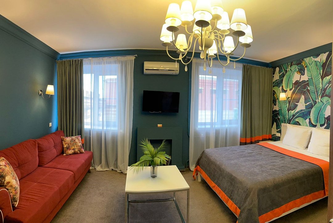 Однокомнатный номер "Первой категории" с двуспальной кроватью и диваном (или без дивана).Услуги и удобства
