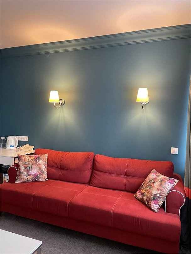 Просторный двухкомнатный номер первой категории изысканный дизайн которого был продуман до мелочей. Элегантная спальня с двуспальной кроватью, стильная гостиная с местом для отдыха, большая ванная комната с гидромассажем – идеальное сочетание для ценителей эксклюзивного отдыха.Услуги и удобства