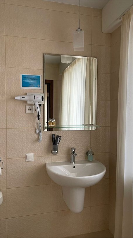 телевизор, Wi-Fi, кондиционер, фен, душевая кабина, банные полотенца, тапочки, две односпальные или большая двуспальная кровать, шкаф для одежды, вешалки, журнальный столик, зеркало, унитаз, раковина, питьевая вода, отопление, кулер на этаже, стаканы, стул, тумба, туалет, москитная сетка, без питомцевВ номере