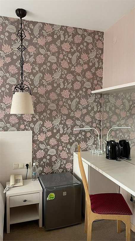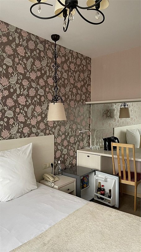 Wi-Fi, телефон, кондиционер, фен, душевая кабина, односпальная кровать, шкаф для одежды, вешалки, письменный стол, багажная тумба, зеркало, обслуживание номеров, унитаз, раковина, отопление, кулер на этаже, стул, тумба, внутренний телефон, телевизор с плоским экраном, москитная сетка, без питомцевВ номере