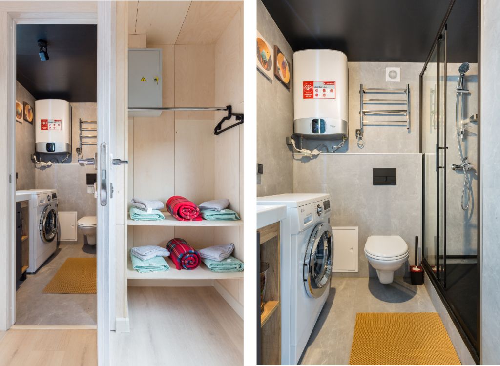 В распоряжении гостей есть интеллектуальная система отопления — поддержание температуры зимой, а также возможность управлять климатом в любое время года удалённо. К услугам гостей доступна баня-бочка — в этом теплом месте отдыха оборудованы датчики движения, температуры, система управления движением и нагрузкой. С помощью специальных камней гости смогут создавать пар. Для удобства гостей предоставляется следующее: бытовая техника и аудиосистема, кухня с плитой, микроволновой печью, кофеваркой, посудомоечной машиной и стиральной машиной. Кроме того, гостям доступны: зона для отдыха, зона барбекю, садовая мебель и качели, детская площадка для игр, большая терраса у дома и у бани, настольные игры.