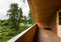В Гостевом домике: баня на 1-м этаже дома располагается комната отдыха с камином, оборудованная кухня, санузел с душевой кабиной и парилка. На 2-м этаже: большая 2-х спальная кровать и кроватка для ребенка и терраса с видом на лес и озеро.