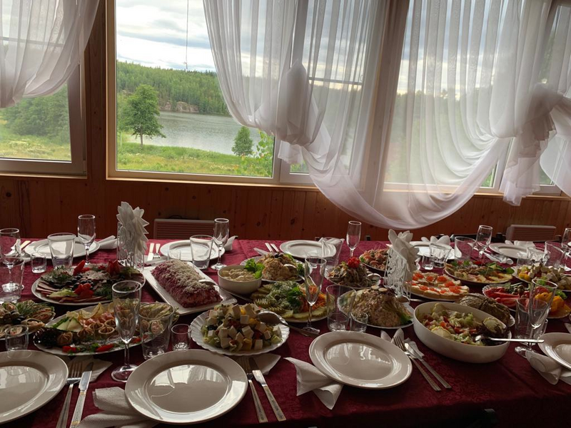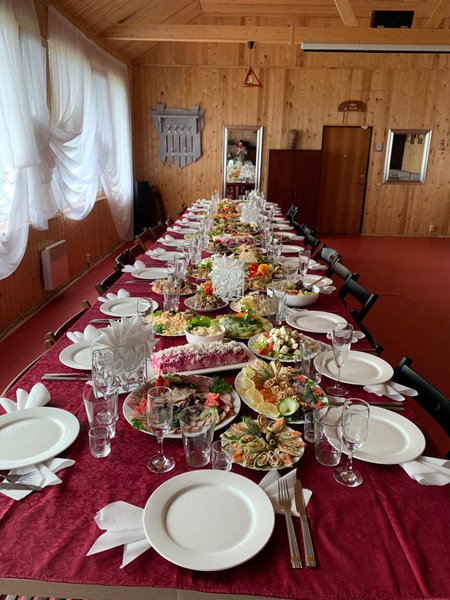 Изюминкой мероприятия может стать европейская подача блюд или шведский стол. Так же площадь зала позволяет расставить мебель по вашему пожеланию, включая европейскую рассадку.