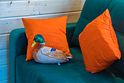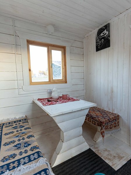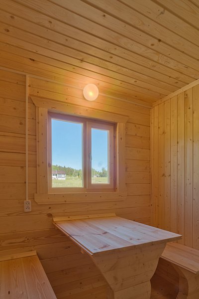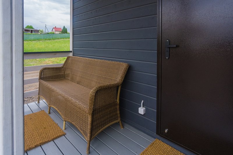 Дом на двоих человек с большой террасой, с которой открывается красивый вид на озеро. В доме одна двуспальная кровать, гостиная-кухня, душевая и туалет.