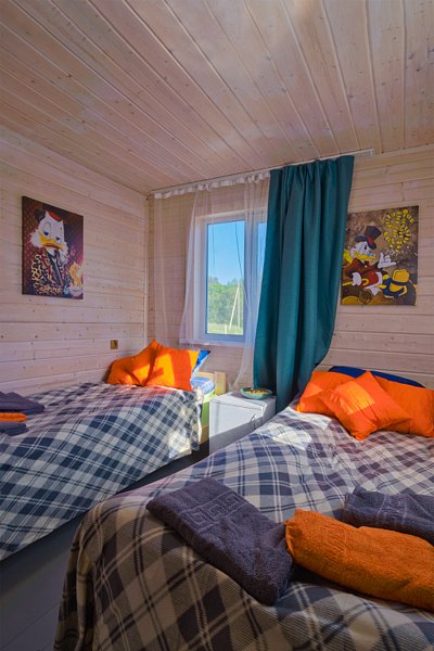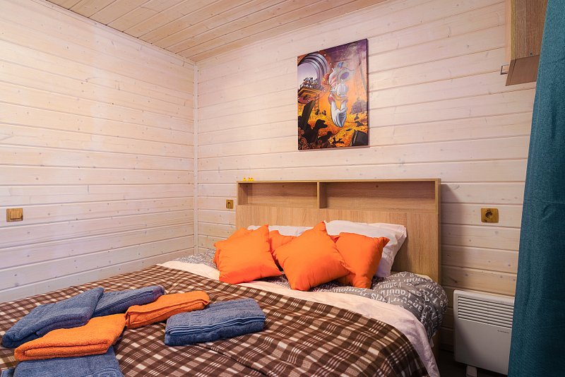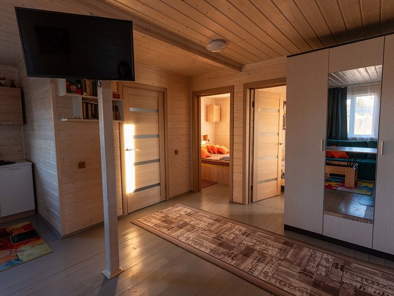 Малый дом у озера, две комнаты одна двухспальная кровать и один двухспальный диван.