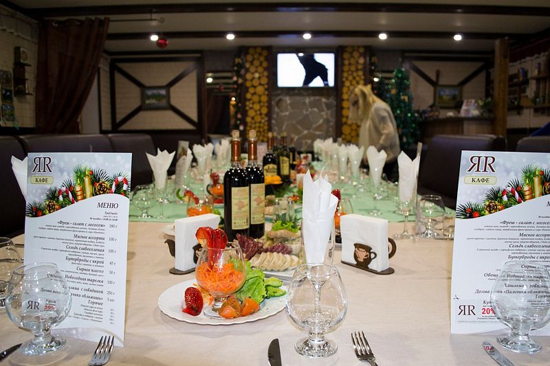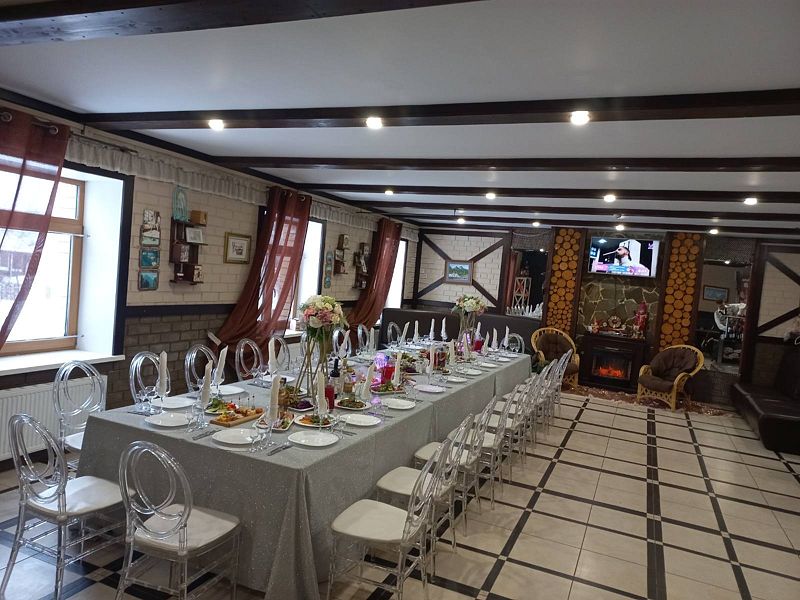 Также это отличное место для проведения мероприятий. Кафе с двумя банкетными залами, в которых можно организовать корпоратив, отметить выпускной или провести свадьбу. А русская баня на дровах и русский чан отлично дополнят ваше пребывание.