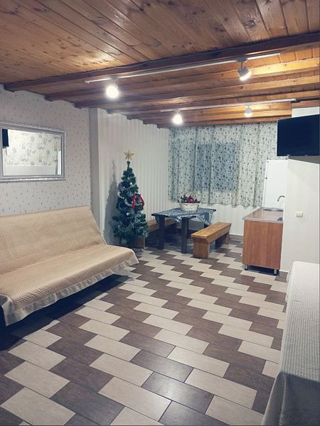 Комфортабельный, двухэтажный домик. Количество спальных мест 9+4(гостевых), большой диван, телевизор, стерео, караоке.