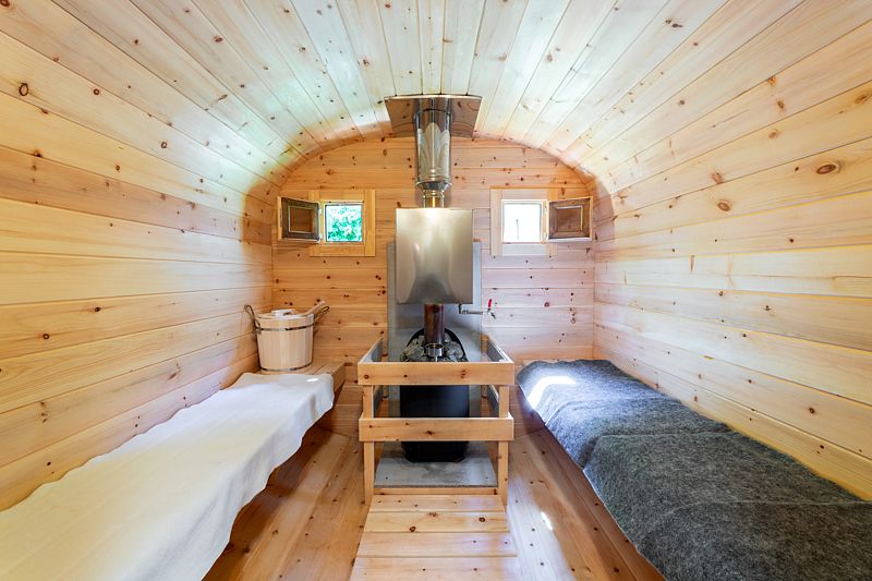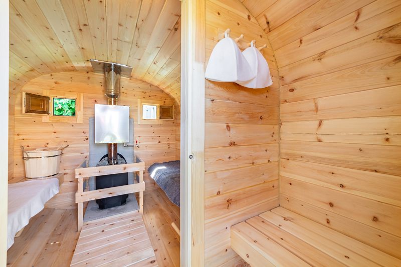 В традиционной русской бане гости могут насладиться живительным теплом дровяной парной, а после — освежиться в купели, наслаждаясь моментами умиротворения и расслабления в уединенной обстановке.
