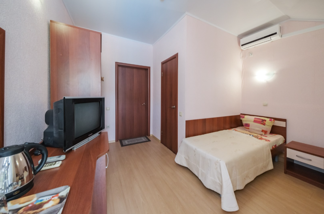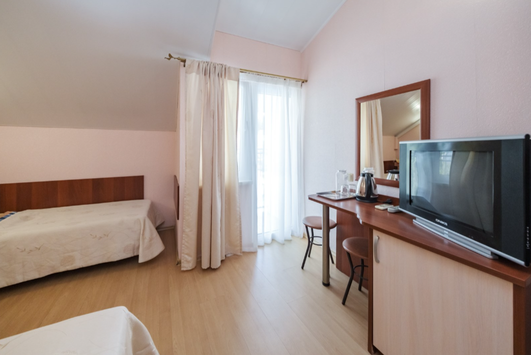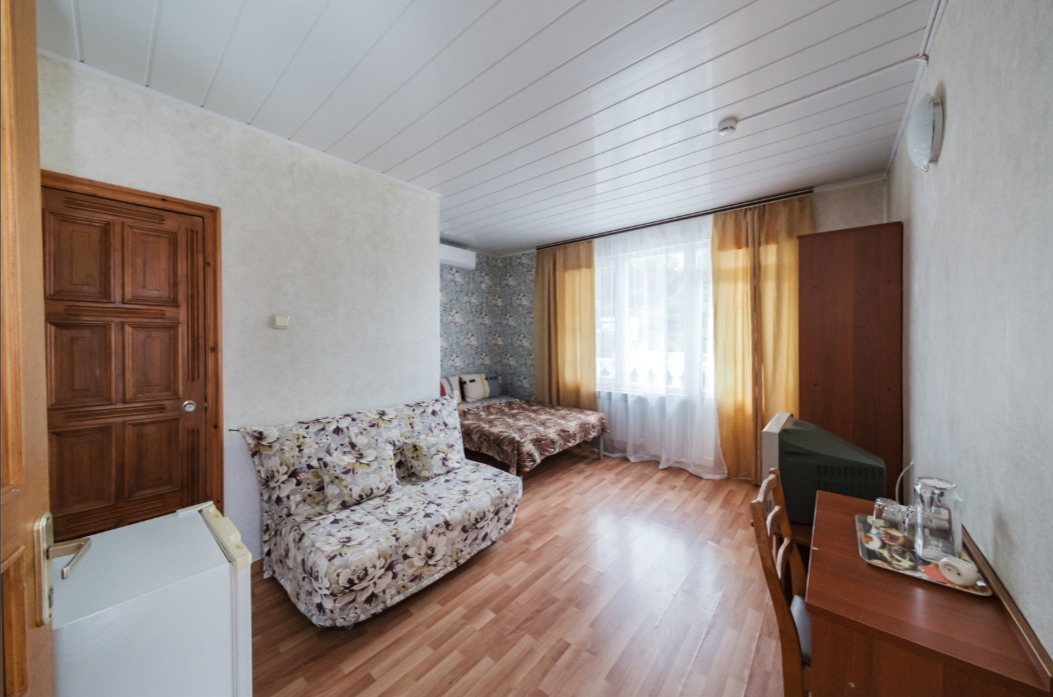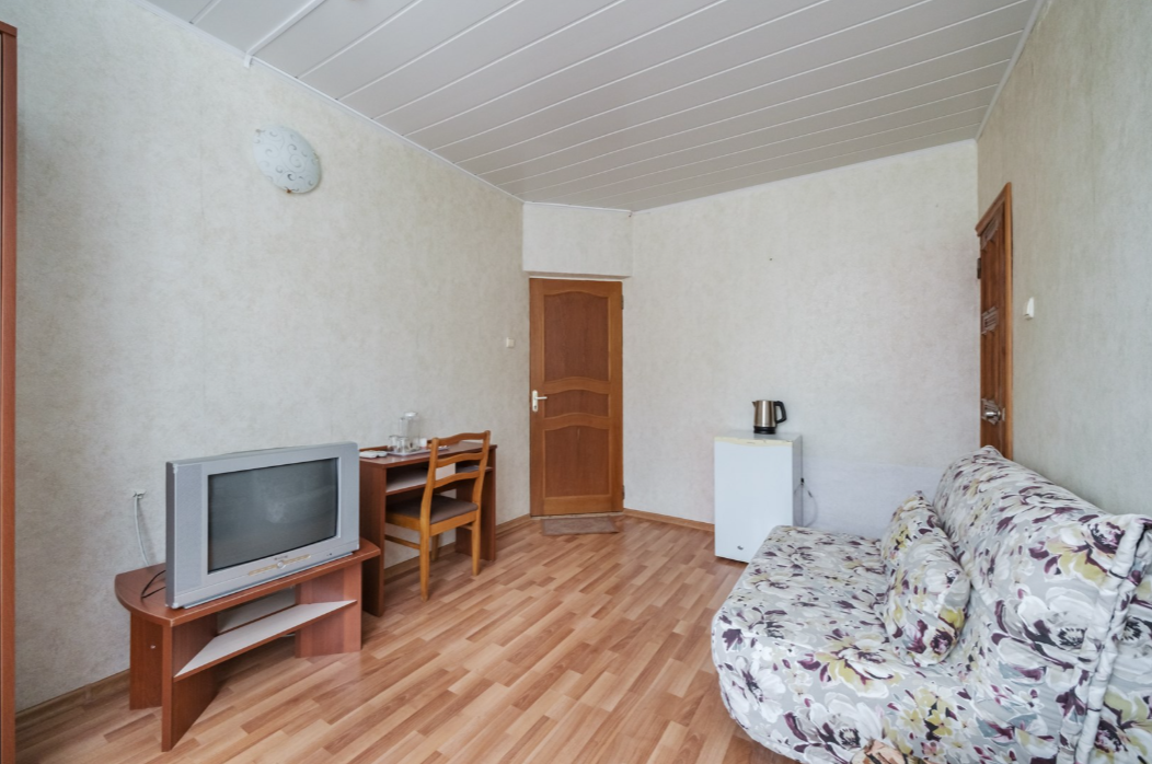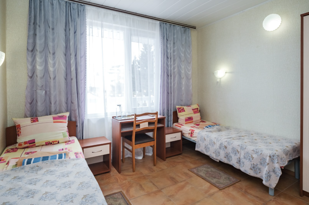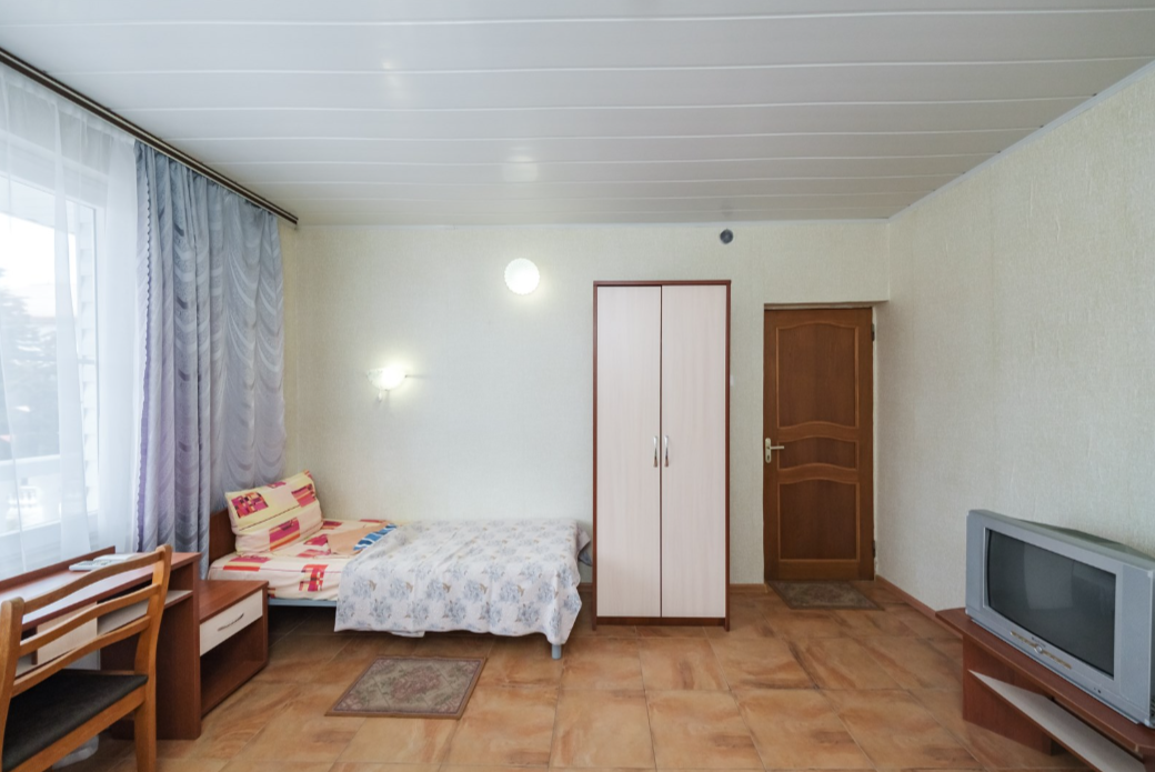 Солнечные однокомнатные номера со всем необходимым для комфортного проживания 2-х человек. В номере допускается дополнительное спальное место — евро раскладушка. Все номера данной категории находятся на 2 этаже. Проживание детей от 0 до 12 лет (включительно) на дополнительном спальном месте возможно при его наличии и по действующим тарифам. Проживание с животными возможно только по согласованию с администрацией пансионата.