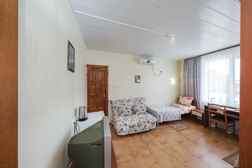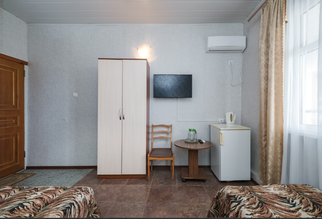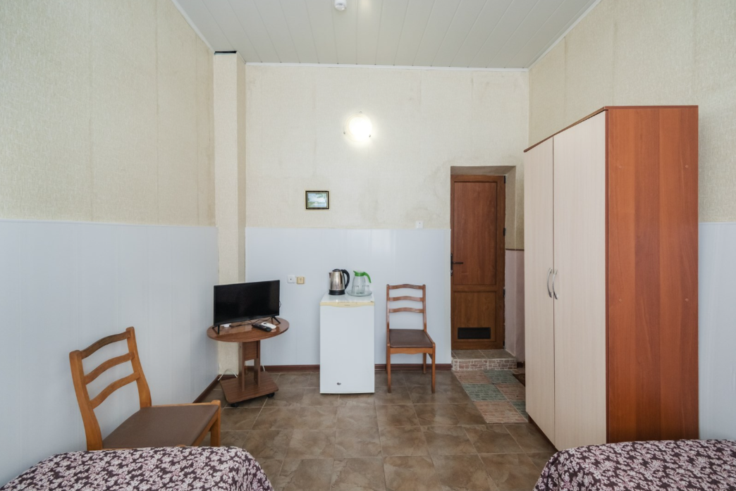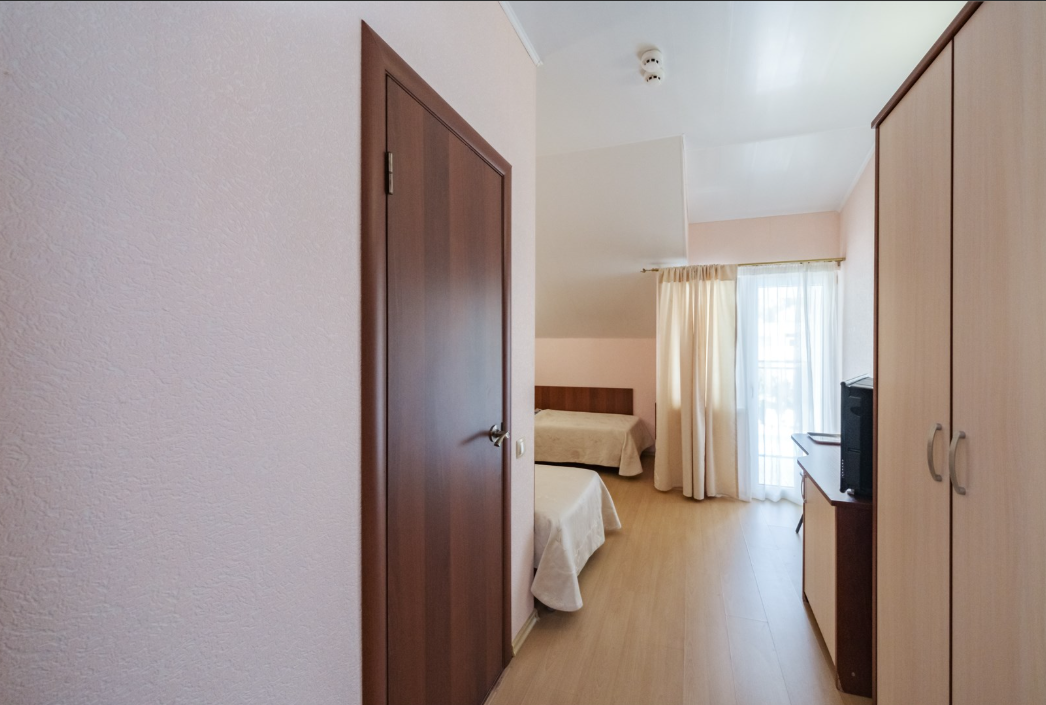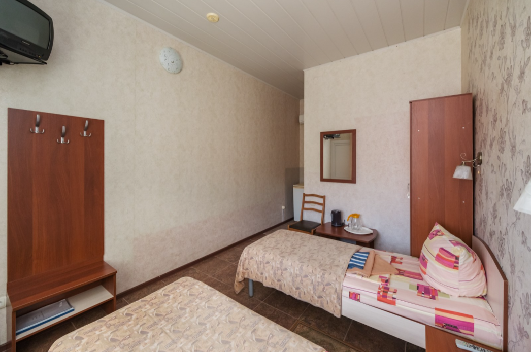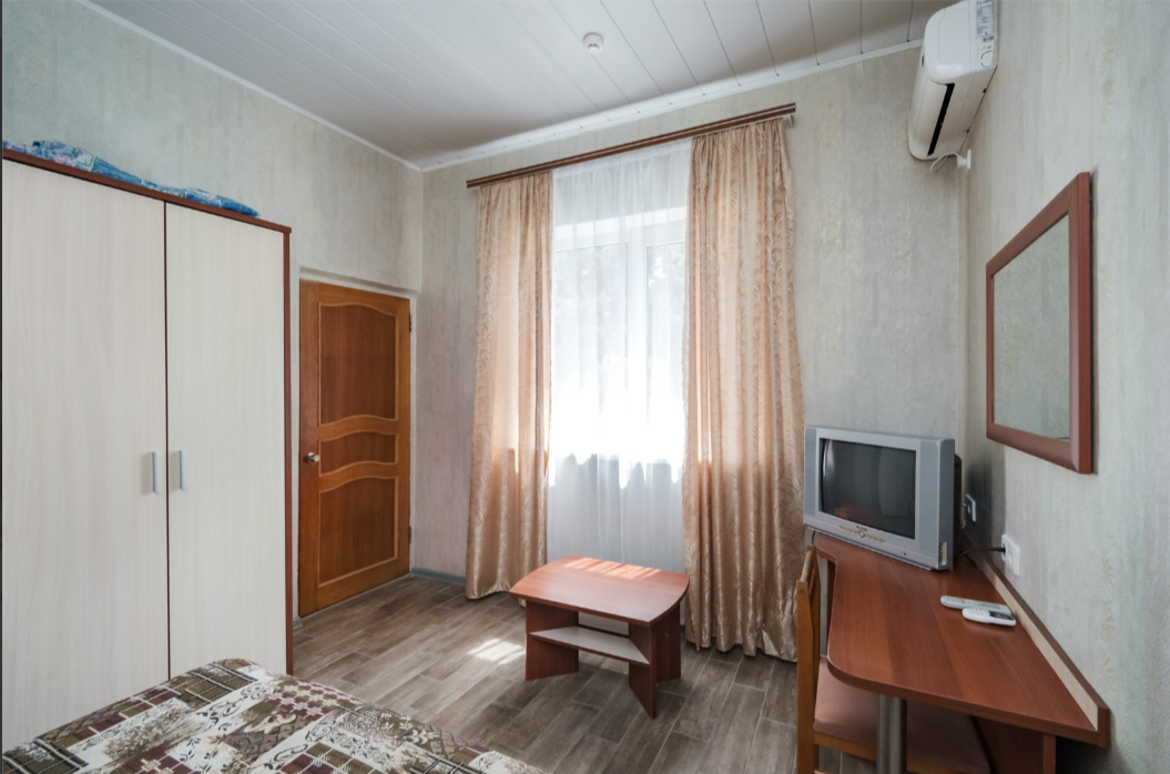 Солнечные однокомнатные номера со всем необходимым для комфортного проживания 2-х человек. В номере допускается дополнительное спальное место — евро раскладушка. Все номера данной категории находятся на 2 этаже. Проживание детей от 0 до 12 лет (включительно) на дополнительном спальном месте возможно при его наличии и по действующим тарифам. Проживание с животными возможно только по согласованию с администрацией пансионата.