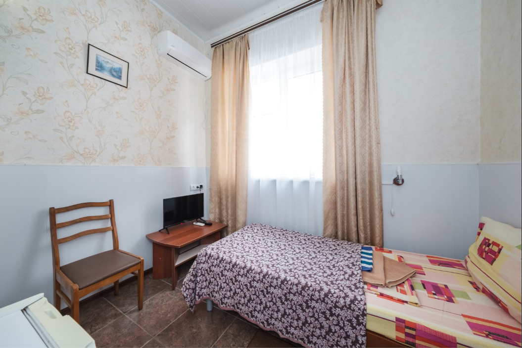 Компактный 1-но местный номер со всем необходимым для уютного проживания. Номер данной категории находится на 2 этаже, на теневой стороне. В данной категории номеров проживание с животными ЗАПРЕЩЕНО.