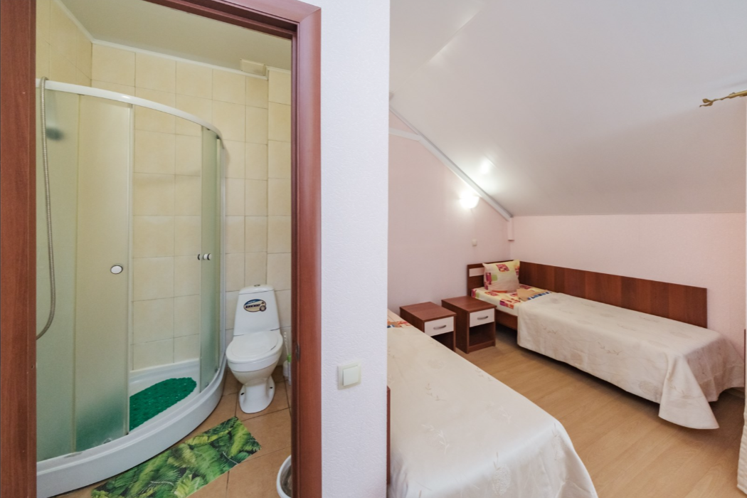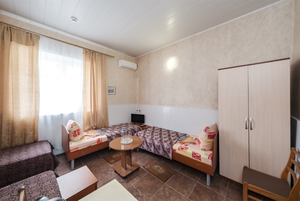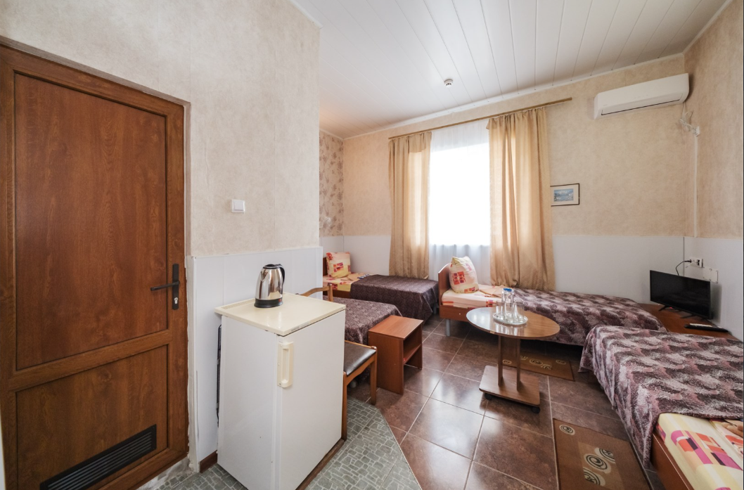 Уютный 4х местный номер со всем необходимым для комфортного проживания. Номер данной категории находится на 2 этаже, на теневой стороне. В данной категории номеров проживание с животными ЗАПРЕЩЕНО.