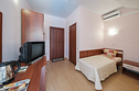 Уютный однокомнатный номер с балконом со всем необходимым для комфортного проживания 2-х человек. Все номера данной категории находятся на 1 этаже, на солнечной стороне. В номере допускается дополнительное спальное место — евро раскладушка. Проживание детей от 0 до 12 лет (включительно) на дополнительном спальном месте возможно при его наличии и по действующим тарифам. Проживание с животными возможно только по согласованию с администрацией пансионата.
