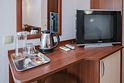 В однокомнатном номере есть все необходимое для комфортного проживания 2-х человек. В номере допускается дополнительное спальное место — евро раскладушка. Все номера данной категории находятся на 3 этаже. Проживание детей от 0 до 12 лет (включительно) на дополнительном спальном месте возможно при его наличии и по действующим тарифам. Цвет мебели и фактура могут отличаться от фото на сайте. В данной категории номеров проживание с животными ЗАПРЕЩЕНО.