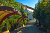 Территория пансионата небольшая,но очень зеленая.Много цветов.Красиво.Возле бассейна лежаки и столики.Негромко играет музыка.Ровно в 22.00 её выключают.