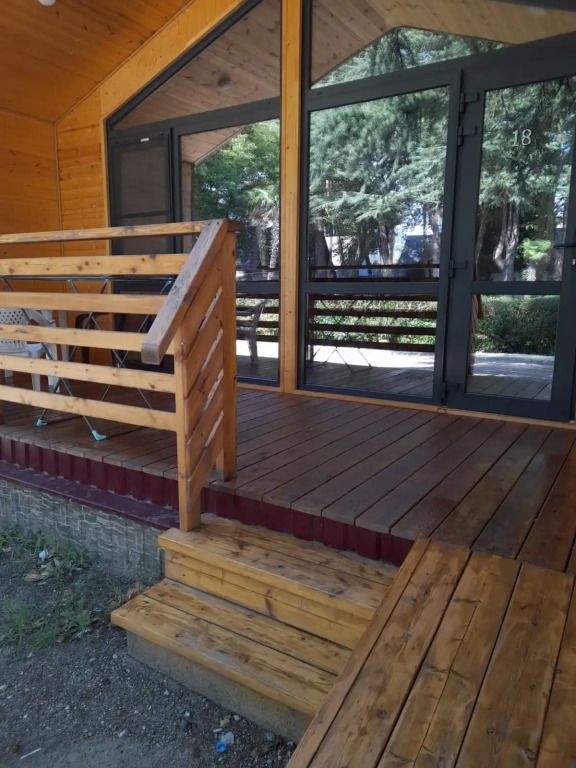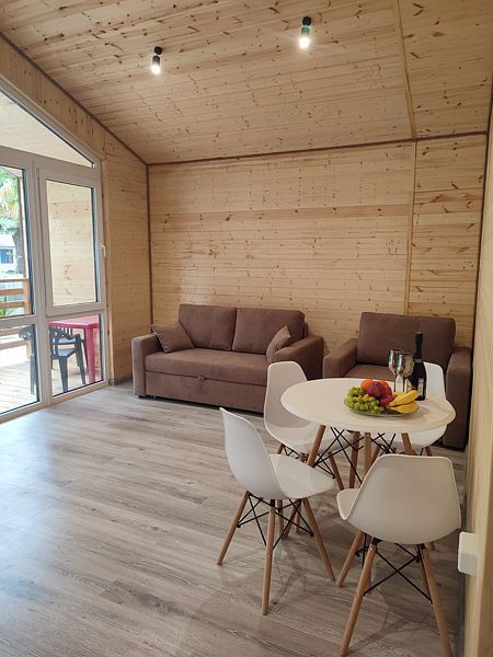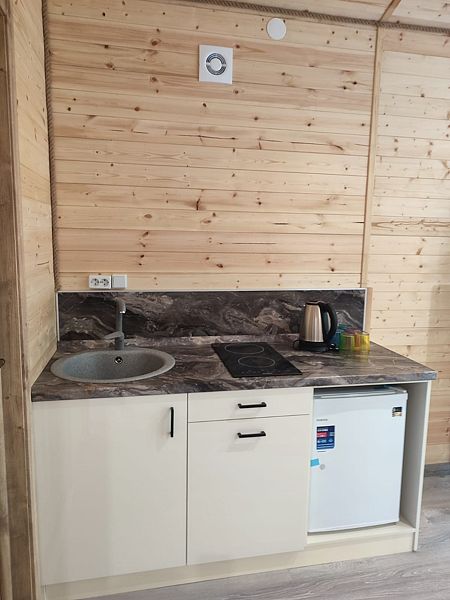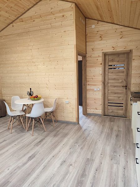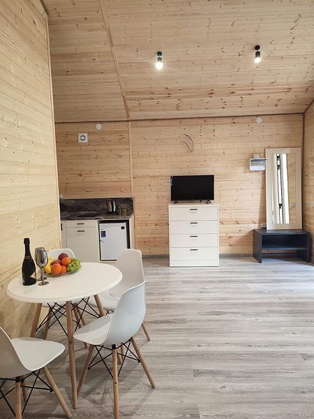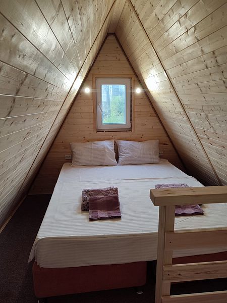 Уютная и просторная эко-вилла «Афрейм» предназначена для размещения четырех человек: трех на основных местах и одного на дополнительном. Расположена в окружении высоких деревьев и сосен. В эко-вилле две односпальные или двухспальная кровати, диван. Есть собственная терраса. Собственная кухня со всей необходимой посудой. Обращаем внимание: на фотографиях представлена категория эко-виллы. Фактическая планировка и видовые характеристики могут отличаться от представленных.Услуги и удобства