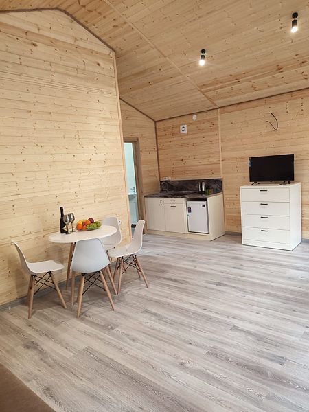Уютная и просторная двухкомнатная эко-вилла «Барнхаус» предназначена для размещения пяти человек: трех на основных местах и двух на дополнительных. Расположена в окружении высоких деревьев и сосен. В эко-вилле две односпальные или двухспальная кровати, диван и кресло. Есть собственная терраса. Собственная кухня со всей необходимой посудой. Обращаем внимание: на фотографиях представлена категория номера. Фактическая планировка и видовые характеристики могут отличаться от представленных.Услуги и удобства