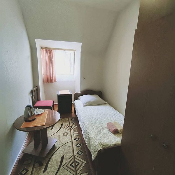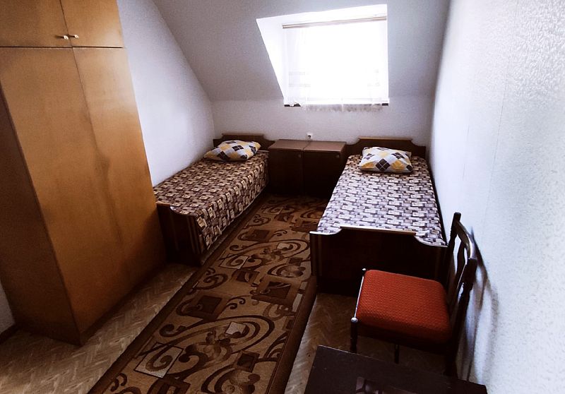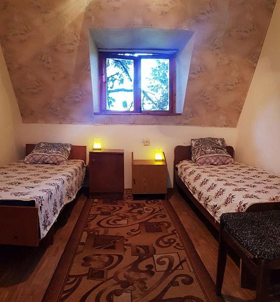 Расположен на 2 этаже со 2 по 4 корпус, мансардного типа. В номере 2 односпальные кровати, прикроватные тумбочки, шкаф. Душ, с/у и холодильник - на этаже.Услуги и удобства