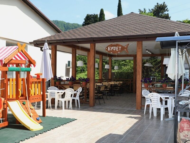 На территории отеля ежедневно работает буфет. Есть зона барбекю, где отдыхающие могут пожарить мясо или приготовить овощи-гриль. Для автовладельцев возле корпуса организована парковка. На ресепшене гости могут приобрести экскурсии, заказать конные прогулки, взять на прокат велосипеды. Малышам отель предоставляет стульчики для кормления и кроватки-манежи.
