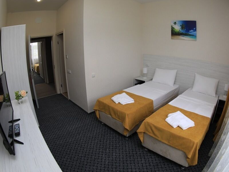Двухэтажный корпус отеля занимает небольшую территорию площадью 1100 кв.м. Жилой фонд, рассчитанный на 40 человек, предлагает отдыхающим двухместные номера Стандарт и четырехместные Семейные. Светлые уютные номер оснащены всем необходимым. В каждой комнате есть собственный санузел с душевой кабиной, сплит-система, телевизор, беспроводной интернет. В семейных номера предусмотрена мини-кухня.
