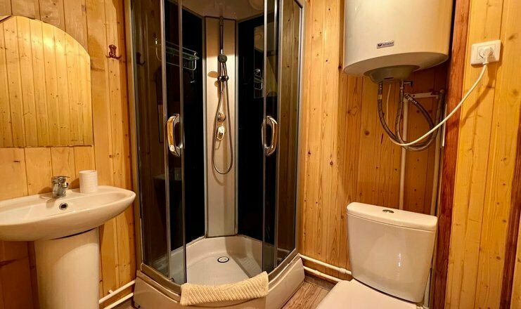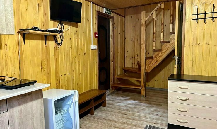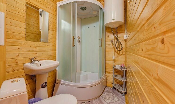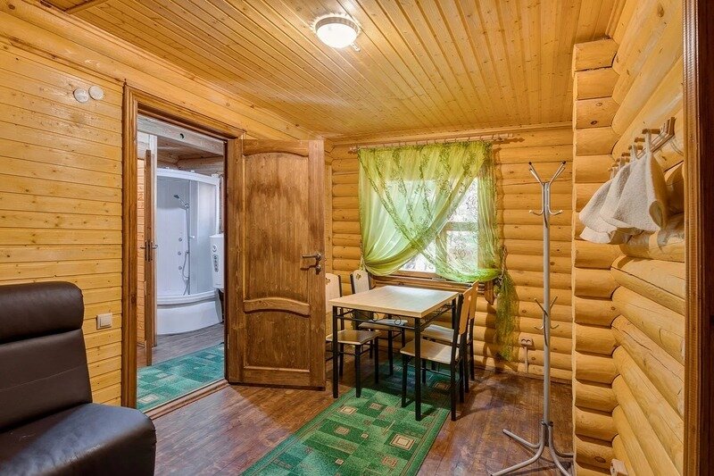 Дом внутри уютный, почти есть все необходимое, не хватает только розеток в ванной и хорошей душевой комнаты (та что есть маленькая и неудобная). Рядом с домом у нас был деревянный настил, на котором стоял стол и был свой мангал.