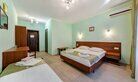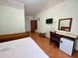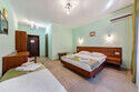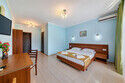 Кровать двуспальная (или 2 раздельные), тумбочки прикроватные, шкаф, холодильник, кондиционер, телевизор, фен, санузел (душ+туалет), доп.место - односпальная кровать.