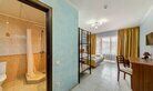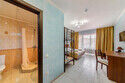 Кровать двуспальная (или 2 раздельные), тумбочки прикроватные, шкаф, холодильник, кондиционер, фен, санузел (душ+туалет), доп.место - кресло-кровать.