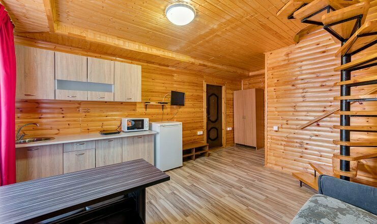 1 кухня-гостиная на первом этаже + 1 спальня на втором этаже.