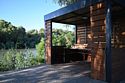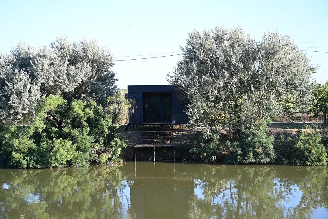 Каждый дом оснащен индивидуальным мостиком для рыбной ловли, террасой с кофейным столиком и мангальной зоной. В доме могут комфортно разместиться 2 взрослых и 2 детей или 3 взрослых.