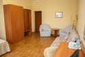Телевизор, холодильник, сплит, с/у (ванная, раковина, унитаз) двуспальная кровать, диван-кровать, два кресла, журнальный столик, тумбочка прикроватная, стол, стулья, шкаф, багажная полка