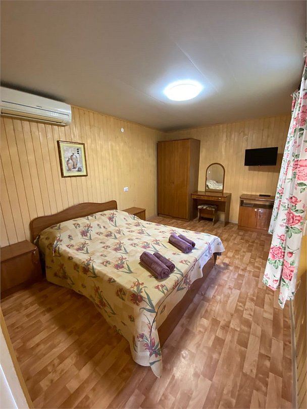 Вайфай есть, фильмы конечно не посмотреть онлайн, но на соцсети с головой хватит. Есть бассейн, есть парковка. Сплит холодит нормально. В стандартном номере есть холодильник, телек, полотенца, шампуни, мыло, комплимент в виде питьевой воды и шоколадки. С вечера можно заказать завтрак на ресепшене, цены доступные. До моря, базарчика и местной улицы с питейными заведениями идти минут 5.