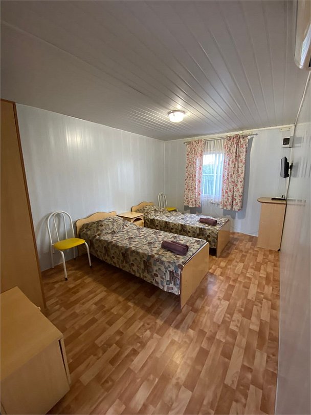телевизор, Wi-Fi, холодильник, санузел, банные полотенца, гигиенические средства, две односпальные кровати, тумбы, стулья, шкаф для одежды, вешалки, письменный стол, багажная тумба, зеркало, минеральная вода, унитаз, раковина, отопление, душ, вид во двор, ламинат, стаканы, стул, сплит-система, цифровое тв, мини-холодильник, москитная сетка, гостиничная парфюмерияВ гостиничном номере